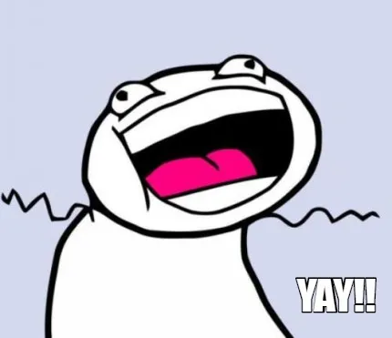 Make your own "Yay!!" meme with MemeCreator's free online meme generator. Add text, stickers, and drawings — then download or share. No watermark, no sign-up required.