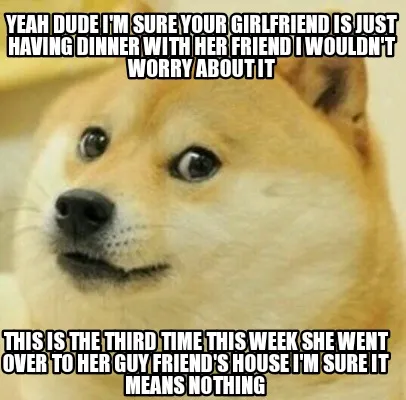 Yeah dude I'm sure your girlfriend is just having dinner with her friend I would Meme Template
