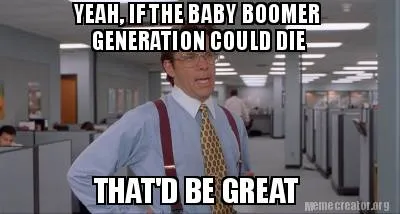 Funny YEAH, IF THE BABY BOOMER GENERATION COULD DIE THAT'D BE GREAT Meme Template