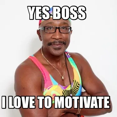 Make your own "Yes boss I love to motivate" meme with MemeCreator's free online meme generator. Add text, stickers, and drawings — then download or share. No watermark, no sign-up required.