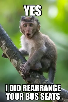 Make your own "Yes I did rearrange your bus seats" meme with MemeCreator's free online meme generator. Add text, stickers, and drawings — then download or share. No watermark, no sign-up required.