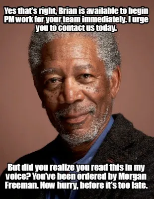 Yes that's right, Brian is available to begin PM work for your team immediately. Meme Template