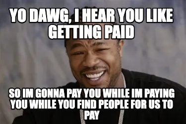 Create Yo dawg, i hear you like getting paid so im gonna pay you while im paying you wh Meme