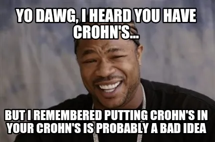 Create Yo dawg, I heard you have crohn's... But I remembered putting crohn's in your cr Meme