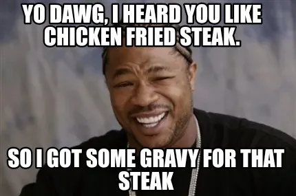 Funny Yo dawg, I heard you like chicken fried steak. So I got some gravy for that stea Meme Template