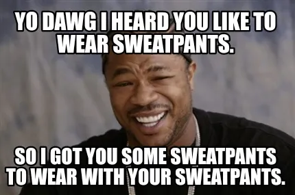 Create Funny Yo dawg I heard you like to wear sweatpants. So I got you some sweatpants to wea Meme