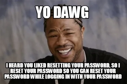 Create Funny Yo Dawg I heard you liked resetting your password, so I reset your password so y Meme