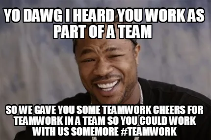 Funny Yo Dawg i heard you work as part of a team so we gave you some teamwork cheers Meme Template