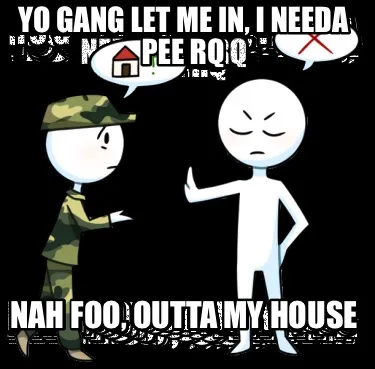 Create Funny Yo gang let me in, I needa pee rq Nah foo, outta my house Meme
