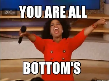 Make your own "Funny You are all Bottom's" meme with MemeCreator's free online meme generator. Add text, stickers, and drawings — then download or share. No watermark, no sign-up required.