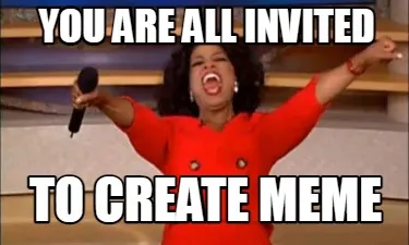 Make your own "You are all invited to create" meme with MemeCreator's free online meme generator. Add text, stickers, and drawings — then download or share. No watermark, no sign-up required.