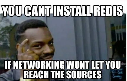 Make your own "You cant install redis if networking wont let you reach the sources" meme with MemeCreator's free online meme generator. Add text, stickers, and drawings — then download or share. No watermark, no sign-up required.