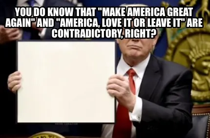 You DO know that "Make America Great Again" and "America, Love It Or Leave It" a Meme Template