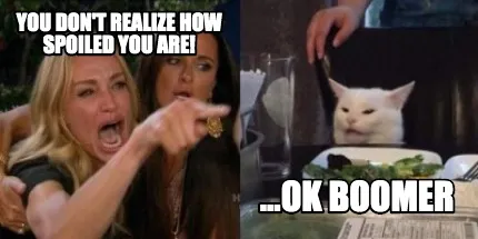 You don't realize how spoiled you are! ...ok boomer Meme Template