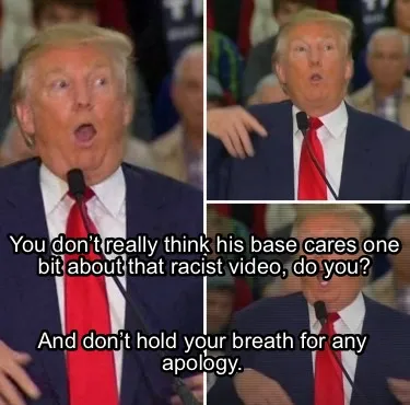 Create You don’t really think his base cares one bit about that racist video, do you? Meme
