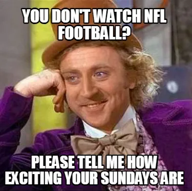 You don't watch nfl football? please tell me how exciting your sundays are Meme Template