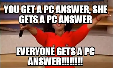 Create You get a pc answer, she gets a pc answer everyone gets a pc answer!!!!!!!! Meme