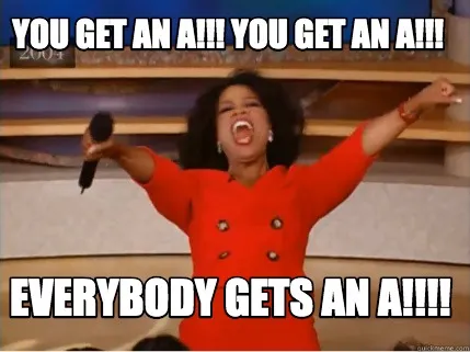 You get an A!!! You get an A!!! Everybody gets an A!!!! Meme Template