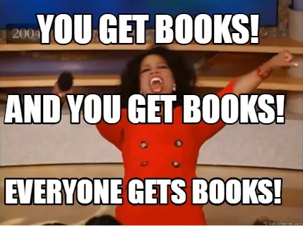 You Get Books Everyone Gets Books And You Get Books Meme Template
