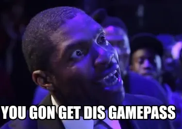 Make your own "You gon get dis gamepass" meme with MemeCreator's free online meme generator. Add text, stickers, and drawings — then download or share. No watermark, no sign-up required.