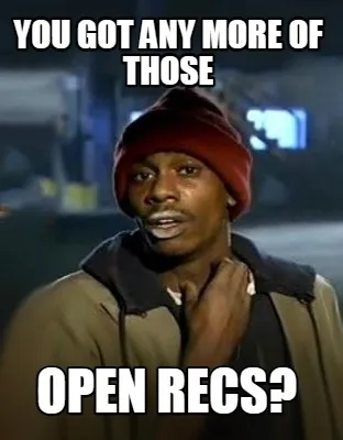 You got any more of those Open Recs? Meme Template