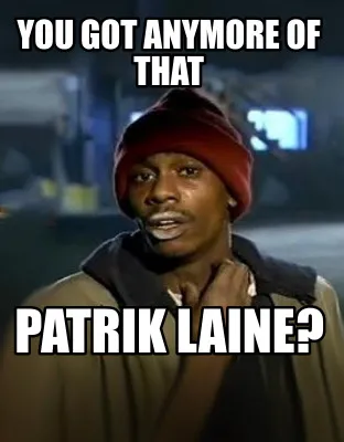 Make your own "You got anymore of that Patrik laine?" meme with MemeCreator's free online meme generator. Add text, stickers, and drawings — then download or share. No watermark, no sign-up required.