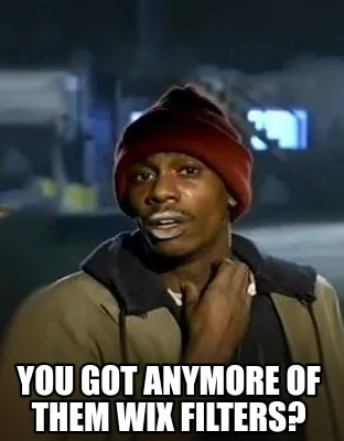 Make your own "You got anymore of them WIX filters?" meme with MemeCreator's free online meme generator. Add text, stickers, and drawings — then download or share. No watermark, no sign-up required.