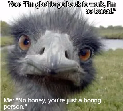 Create Funny You: "I'm glad to go back to work, I'm so bored." Me: "No honey, you're just a b Meme