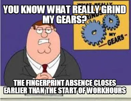 Funny you know what really grind my gears? the fingerprint absence closes earlier than Meme Template