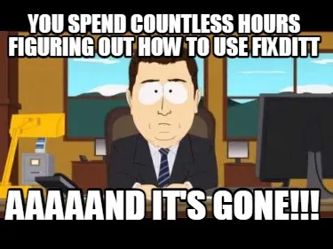 Create Funny you spend countless hours figuring out how to use fixditt aaaaand it's gone!!! Meme