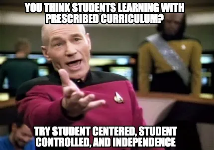 Funny You think students learning with prescribed curriculum? Try student centered, st Meme Template