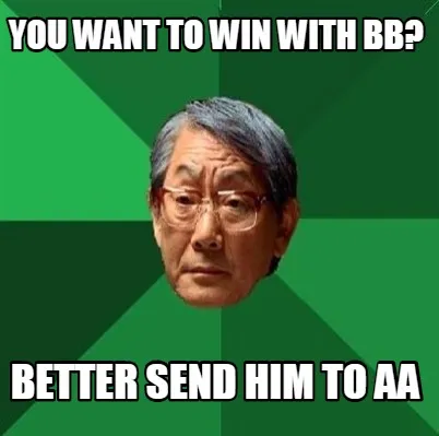 Funny you want to win with bb? better send him to aa Meme Template