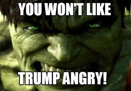Make your own "Funny You Won't Like Trump Angry!" meme with MemeCreator's free online meme generator. Add text, stickers, and drawings — then download or share. No watermark, no sign-up required.