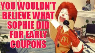 Create Funny You wouldn't believe what Sophie did for early coupons Meme