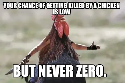 Create Your chance of getting killed by a chicken is low But never zero. Meme