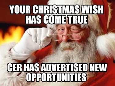 Funny Your Christmas wish has come true CER has advertised new opportunities Meme Template