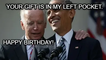 Make your own "Funny Your gift is in my left pocket. Happy birthday!" meme with MemeCreator's free online meme generator. Add text, stickers, and drawings — then download or share. No watermark, no sign-up required.