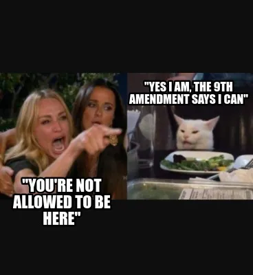 Create Funny "you're not allowed to be here" "yes I am, the 9th amendment says I can" Meme