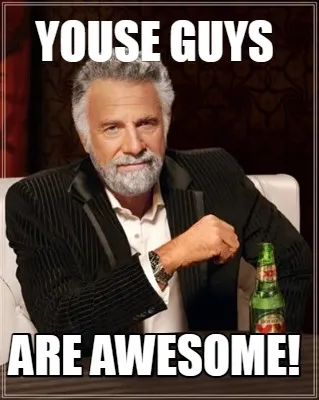 Make your own "Funny Youse guys are awesome!" meme with MemeCreator's free online meme generator. Add text, stickers, and drawings — then download or share. No watermark, no sign-up required.