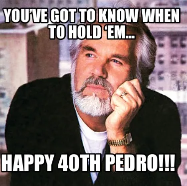 Create Funny You’ve got to know when to hold ‘em… Happy 40th Pedro!!! Meme