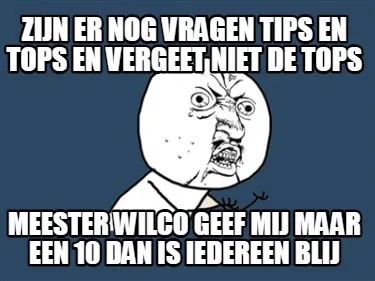 Create Funny zijn er nog Vragen tips en tops en vergeet niet de tops Meester wilco geef mij m Meme