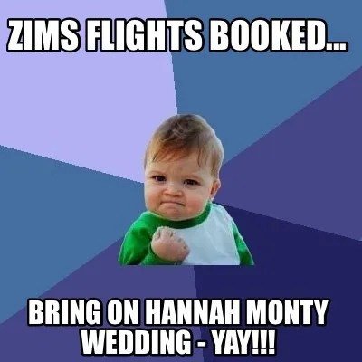 Zims flights booked... Bring on Hannah Monty wedding - Yay!!! Meme Template